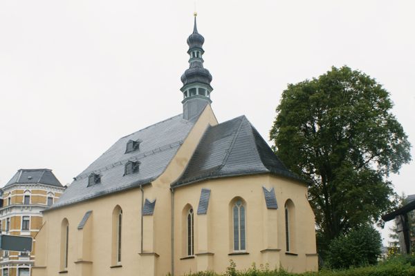 skalna kostel sv jana krtitele fojsinek wikicomm kopieDie Kirche Johannes des Täufers wurde durch den Deutschen Ritterorden gegründet. Die erste schriftliche Erwähnung eines Heinrich, Pfarrer (plebanus) aus Wildstein, stammt aus dem Jahr 1295. Zwischen 1564 und 1628 haben in Wildstein die Prädikanten der Lutheraner gedient, danach weltliche Herren, und 1645—1782 haben Dominikaner aus Eger das Pfarramt verwaltet. Zur Wende 17./18. Jahrhundert war die Kirche schon weitgehend zerstört. Anfang 1704 hatten die Herren Trautenberk beschlossen, die Kirche zu restaurieren. In den Jahren 1705—1709 begann der Umbau des ursprünglich gotischen Bauwerkes in den Barockstil. Die Bauherren waren Johann Wolfgang Braunbock aus Tepl und Adam Sandner aus Schönbach. Es handelt sich bei dem Bau um ein Langhaus mit einem rechteckigen Chor. Über dem Chor ist ein Turm mit doppelter Zwiebelhaube und einer Laterne. Auf dem Westteil des Daches bef ndet sich eine Glocke. Im Erdgeschoss wurden an den Seiten Portale mit Steingewänden eingesetzt. Das Hauptportal findet man auf der westlichen Seite, mit abgesetztem Anbau und mit einem Durchgang mit Tonnengewölbe. Über dem Portal bef ndet sich auf zwei Etagen der Chor. Das Interieur ist ein Saalbau mit Gewölbe, im Presbyterium mit Lünetten. Auf beiden Seiten des Altarraumes sind die Oratorien.